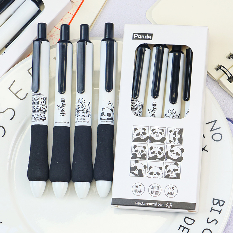 黑白熊猫ins高颜值海绵胖胖中性笔可爱学生考试刷题笔st速干水笔