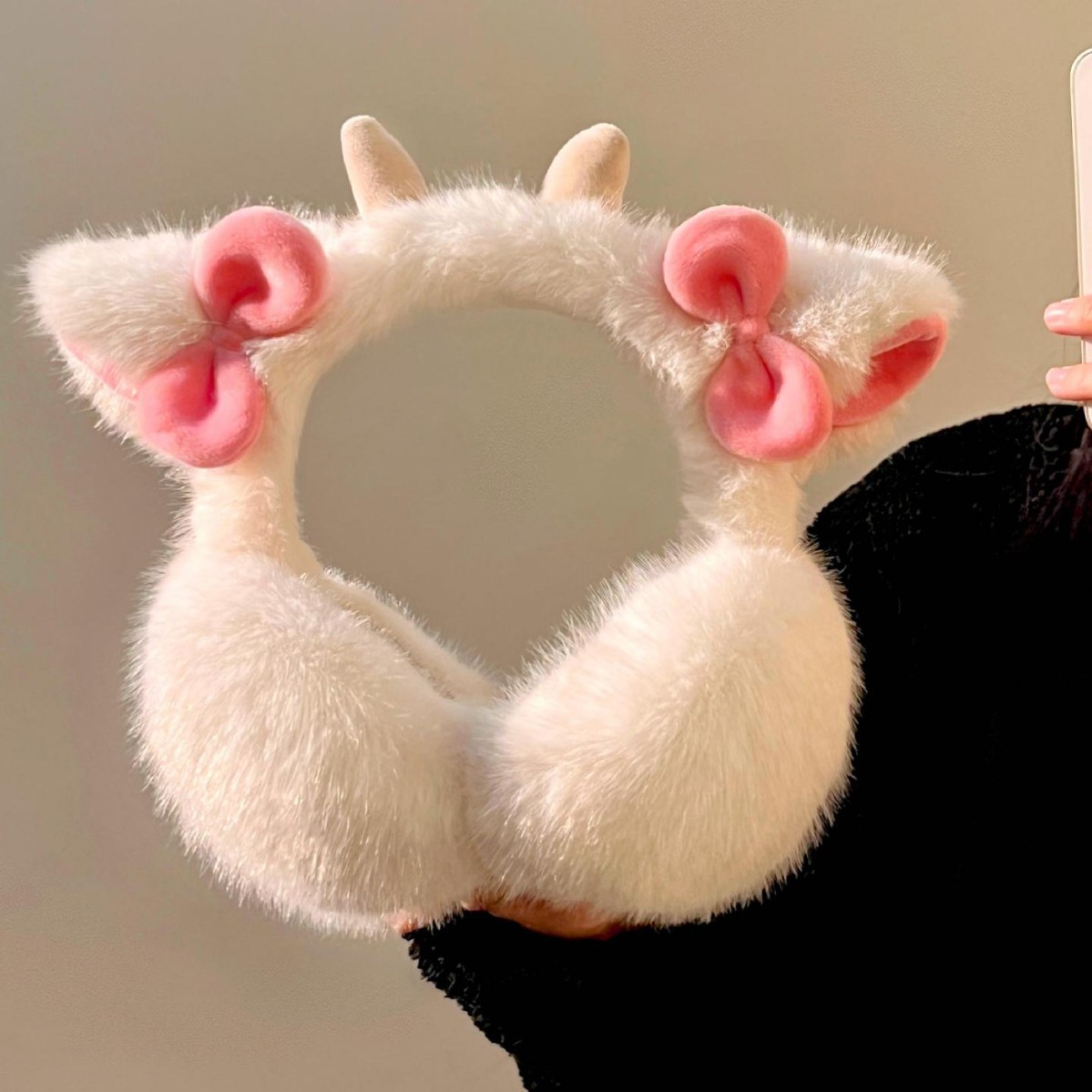 加厚防寒冬季耳罩小羊角毛绒骑车防冻耳套可折叠学生东北耳包护耳