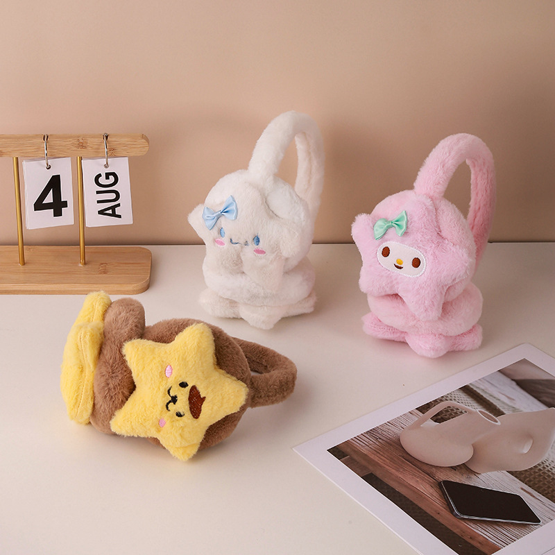 厂家直销冬季耳罩护耳捂女毛绒耳套学生可伸缩卡通五角星保暖耳罩