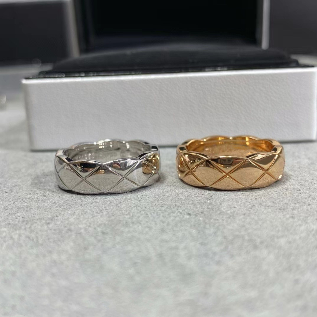 小香菱格戒指925银镀18k金coco玫瑰金宽窄版带钻男女情侣菱格戒指