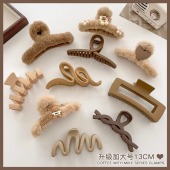 毛毛发夹女后脑勺毛绒鲨鱼夹高级感盘发抓夹大号头发夹子头饰发卡