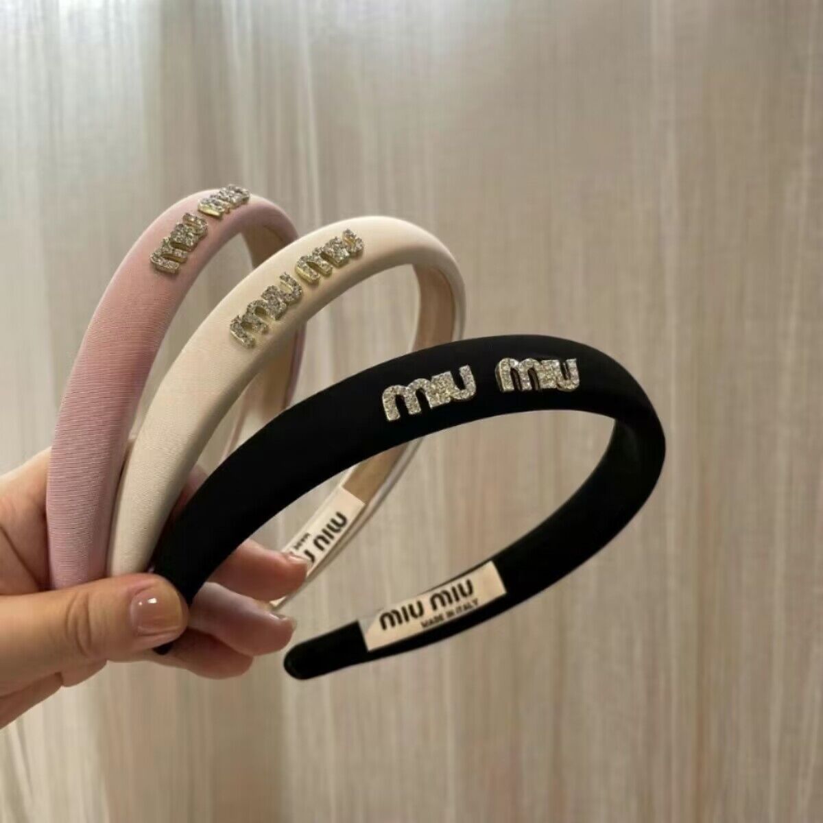2024新款高级气质字母mm发箍黑色水钻头箍简约轻奢网红名媛发饰女
