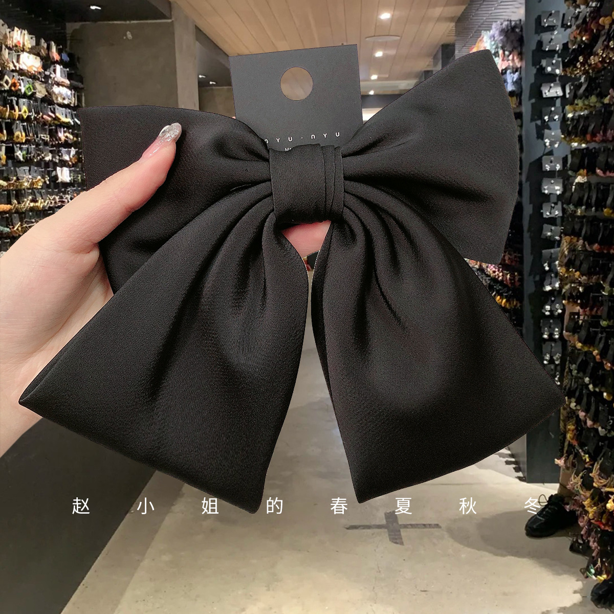 韩国饰品东大门发饰明星同款发夹弹簧夹黑色大蝴蝶结头饰后脑勺女