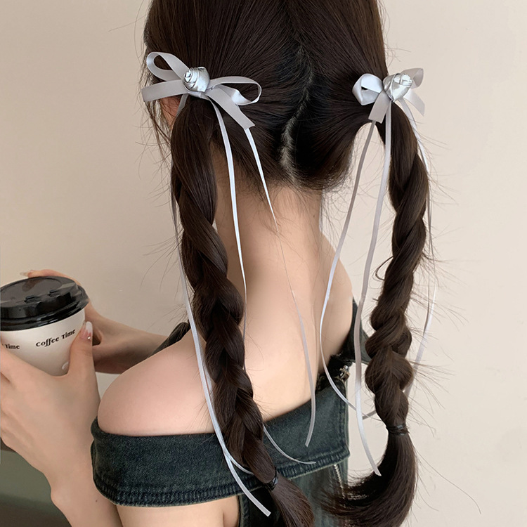 芭蕾风银色花朵蝴蝶结飘带发夹女后脑勺双马尾编发头饰小夹子发饰