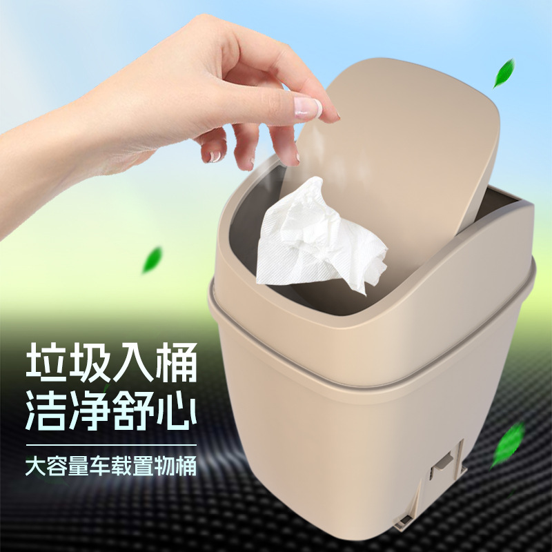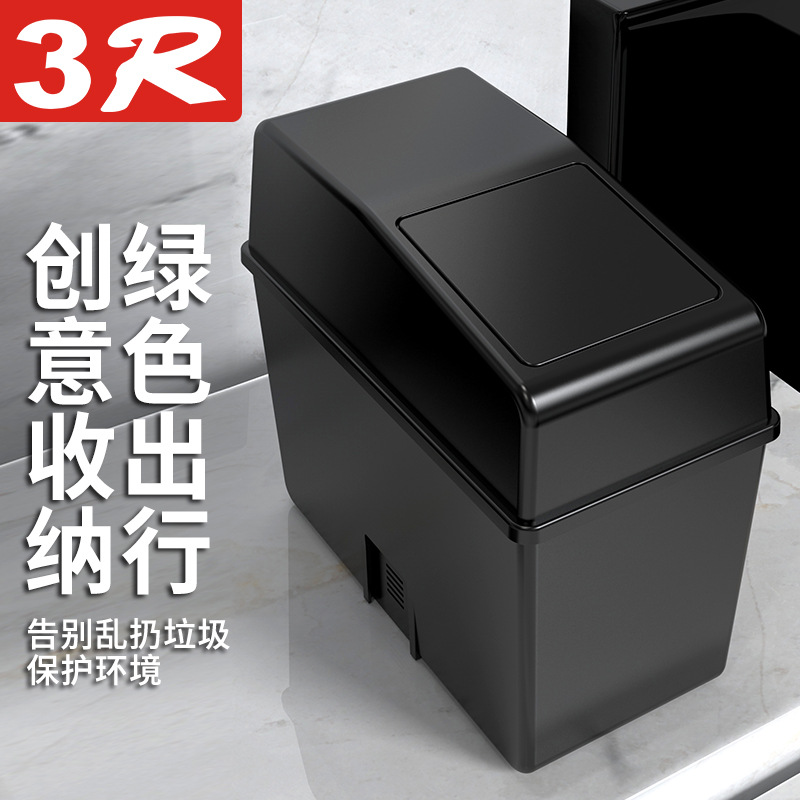 3R车载新品车内大容量储物箱家居通用自动翻盖塑料垃圾桶易清洗