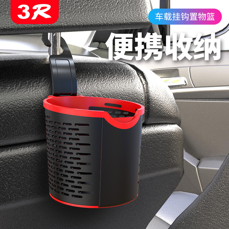 3R汽车通用置物篮跨境新款头枕挂钩桶水杯架塑料后排便利杂物篮子