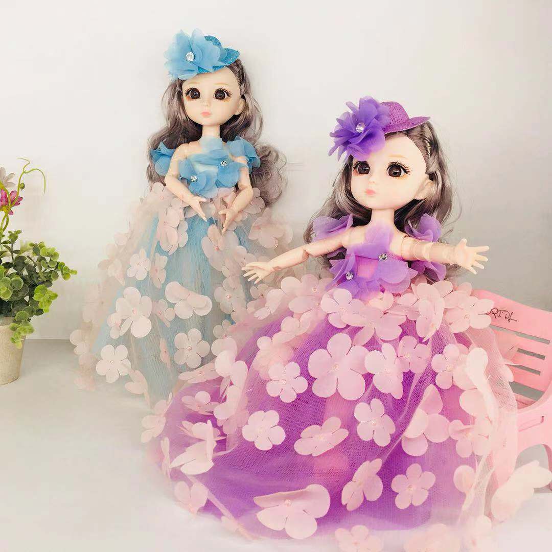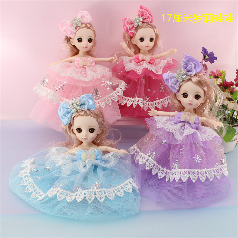 芭比娃娃45cm双层星星亮纱芭比钥匙扣娃娃关节3D眼头纱女孩玩具