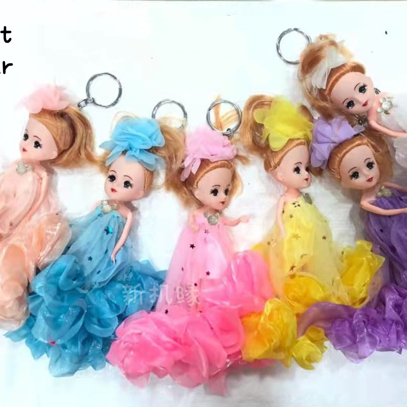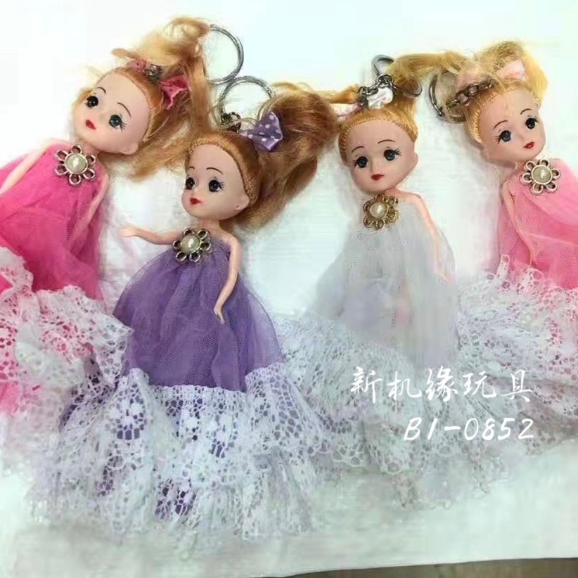 厂家直销20c m钥匙扣芭比娃娃纱蕾丝边纱裙迷糊搪胶娃娃马尾珍妮