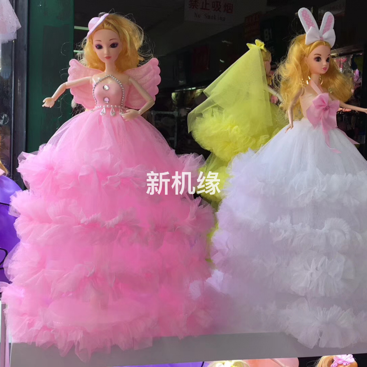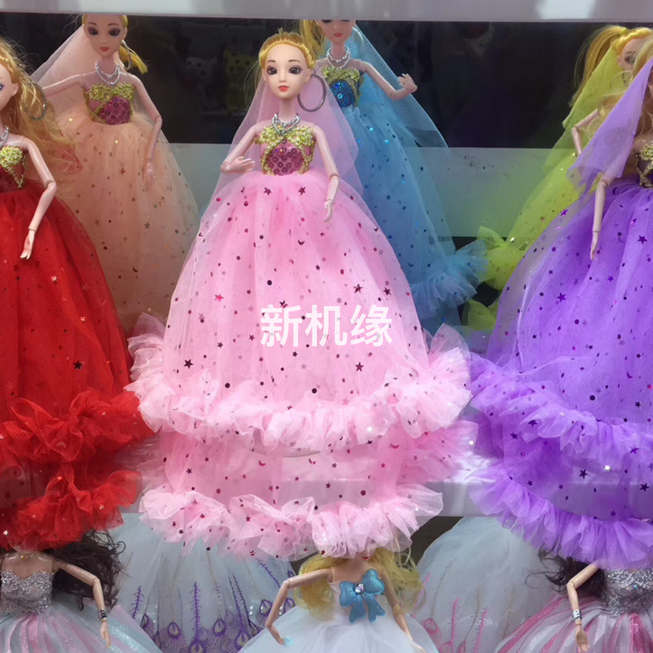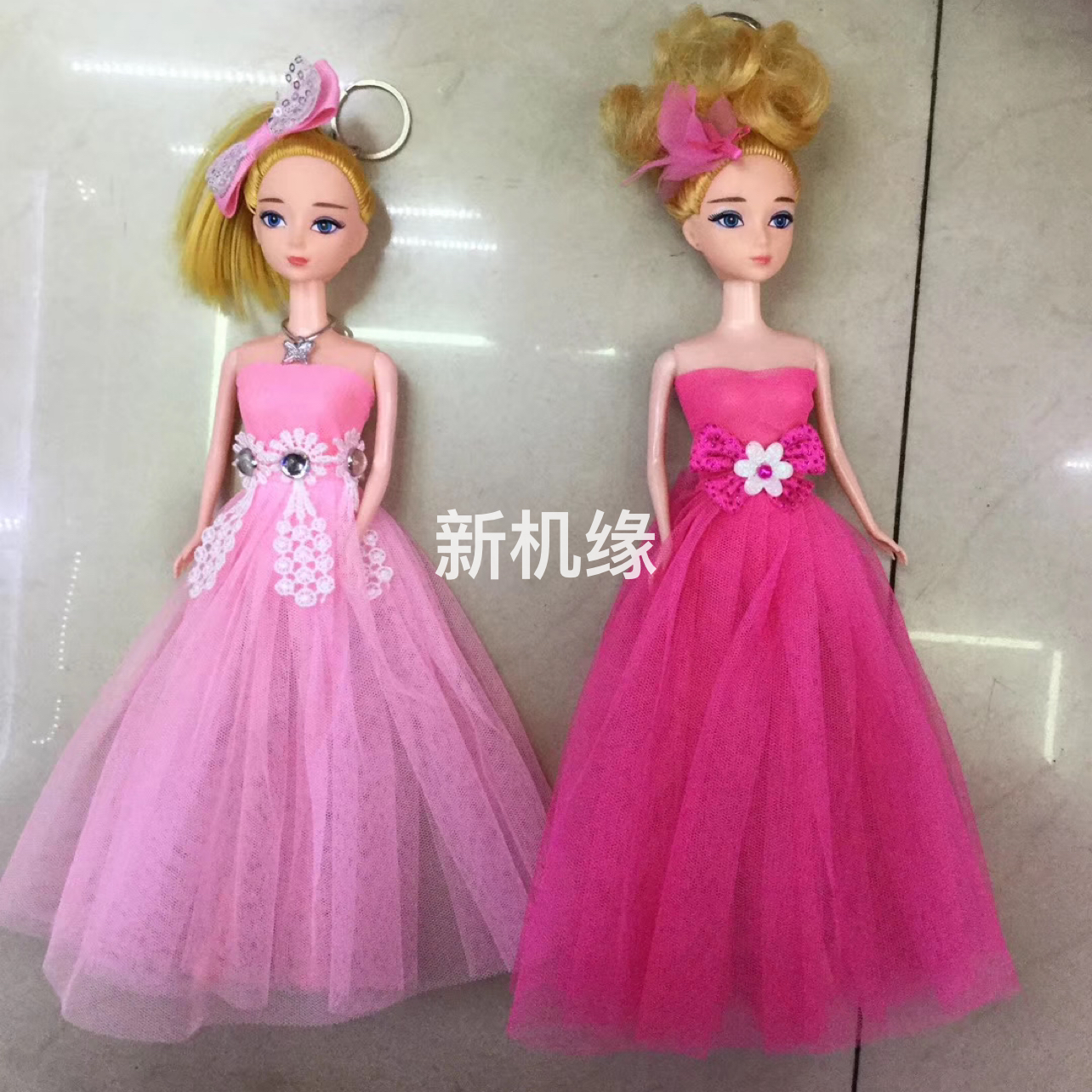 30cm芭比娃娃钥匙扣挂件50cm群长印花蕾丝头纱女孩礼物地摊庙会