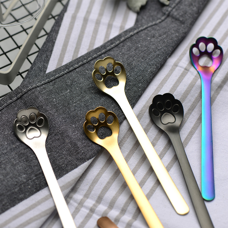 新创意304不锈钢卡通猫爪勺抖音网红镂空咖啡勺甜品雪糕搅拌勺具