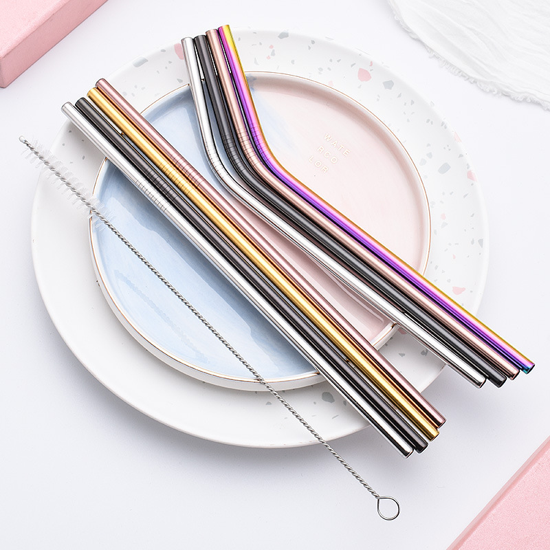 跨境专供食品级304不锈钢彩色金属吸管 饮料创意吸管奶茶奶昔吸管