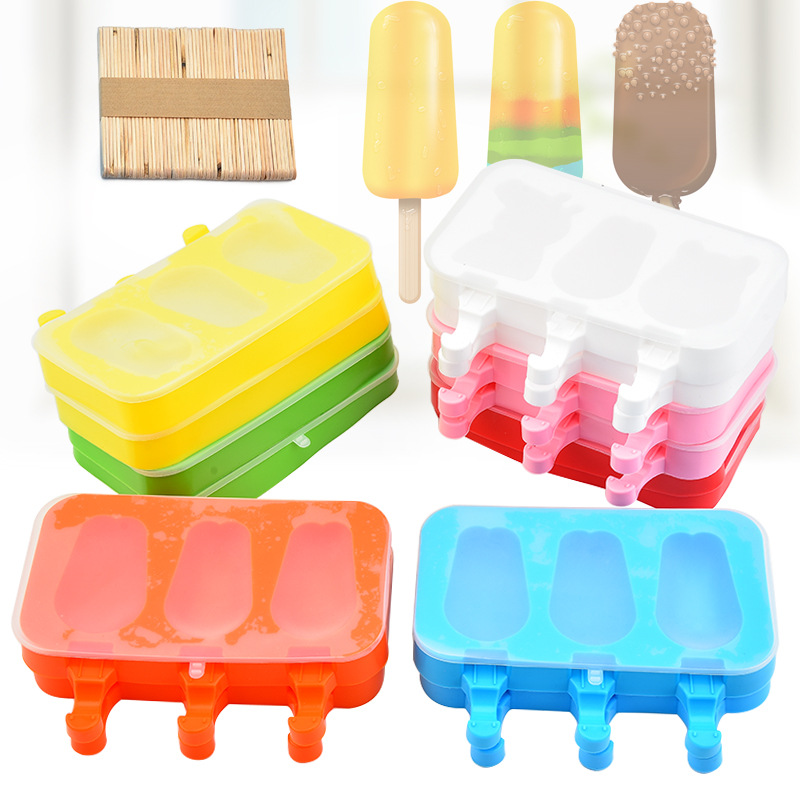 厂家现货雪糕模具硅胶创意冰淇淋模具 DIY自制冰格盒儿童卡通带盖