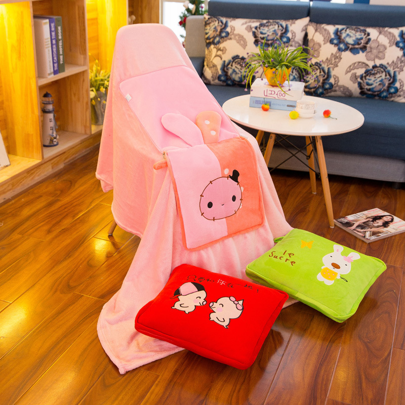 卡通抱枕被子 两用方形空调被 创意室内毛绒玩具公司礼品logo定制