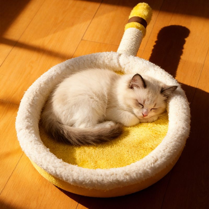 创意平底锅猫窝二合一猫抓板猫窝加厚冬季保暖灯芯绒宠物睡垫猫窝