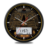al-fatiha牌FAJ-360圆型电池/usb两用黑色墙挂带闹铃电子钟/clock