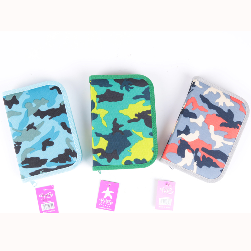 JC6423 迷彩三层男生文具笔袋