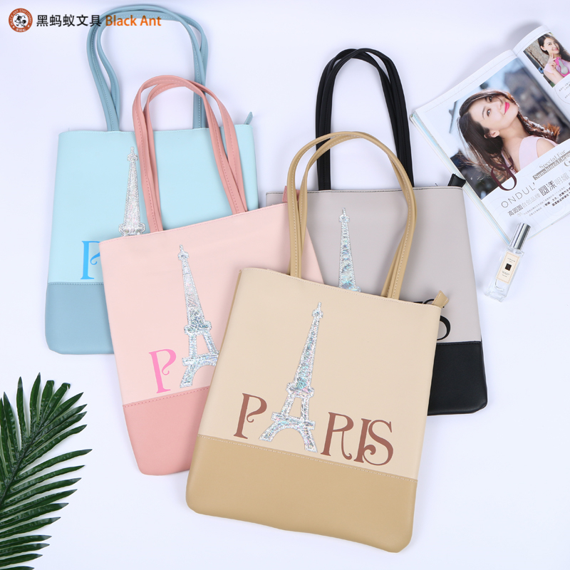 巴黎主题印花图案装饰中小学生学习用品手袋 小清新双提手袋