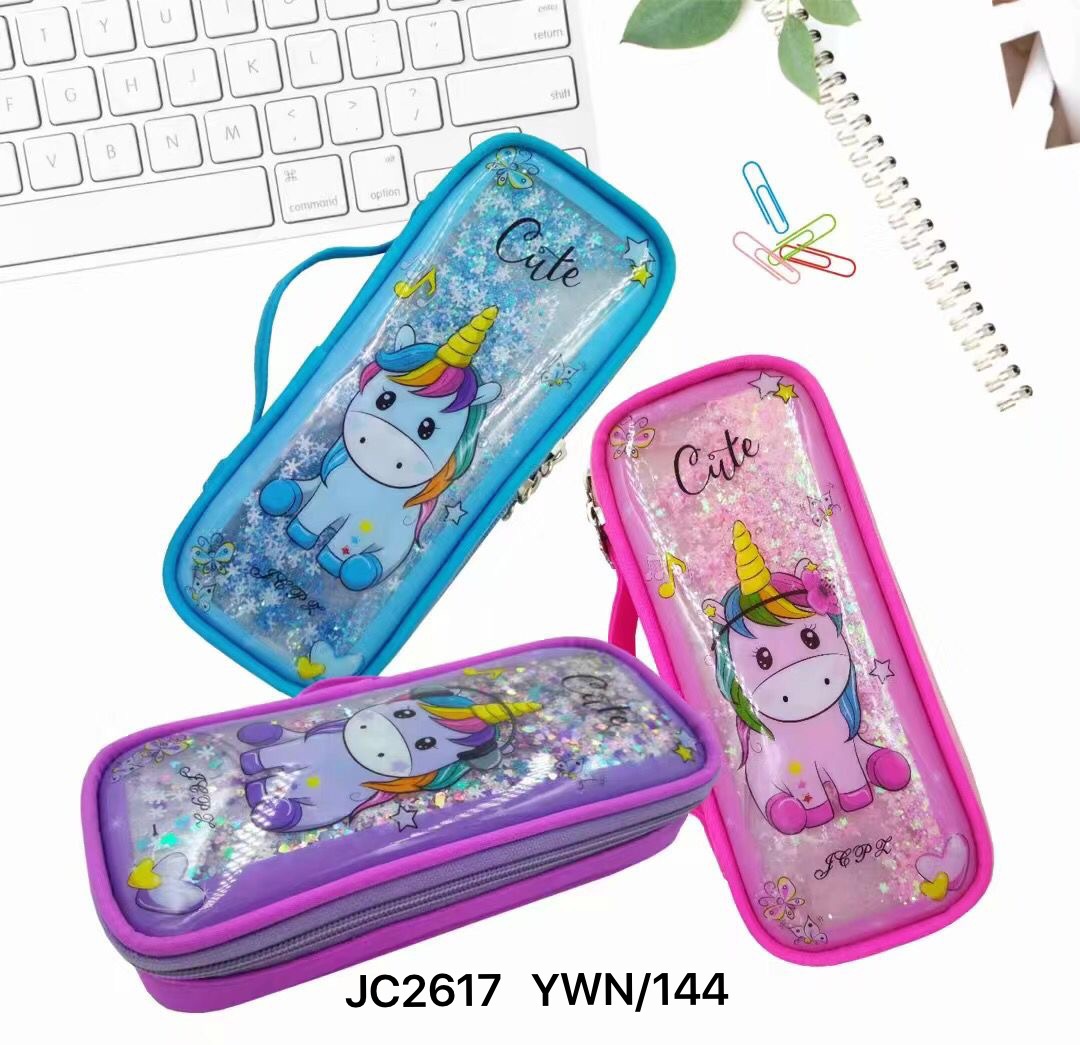 JC2617 流沙小马半透明女生文具笔袋