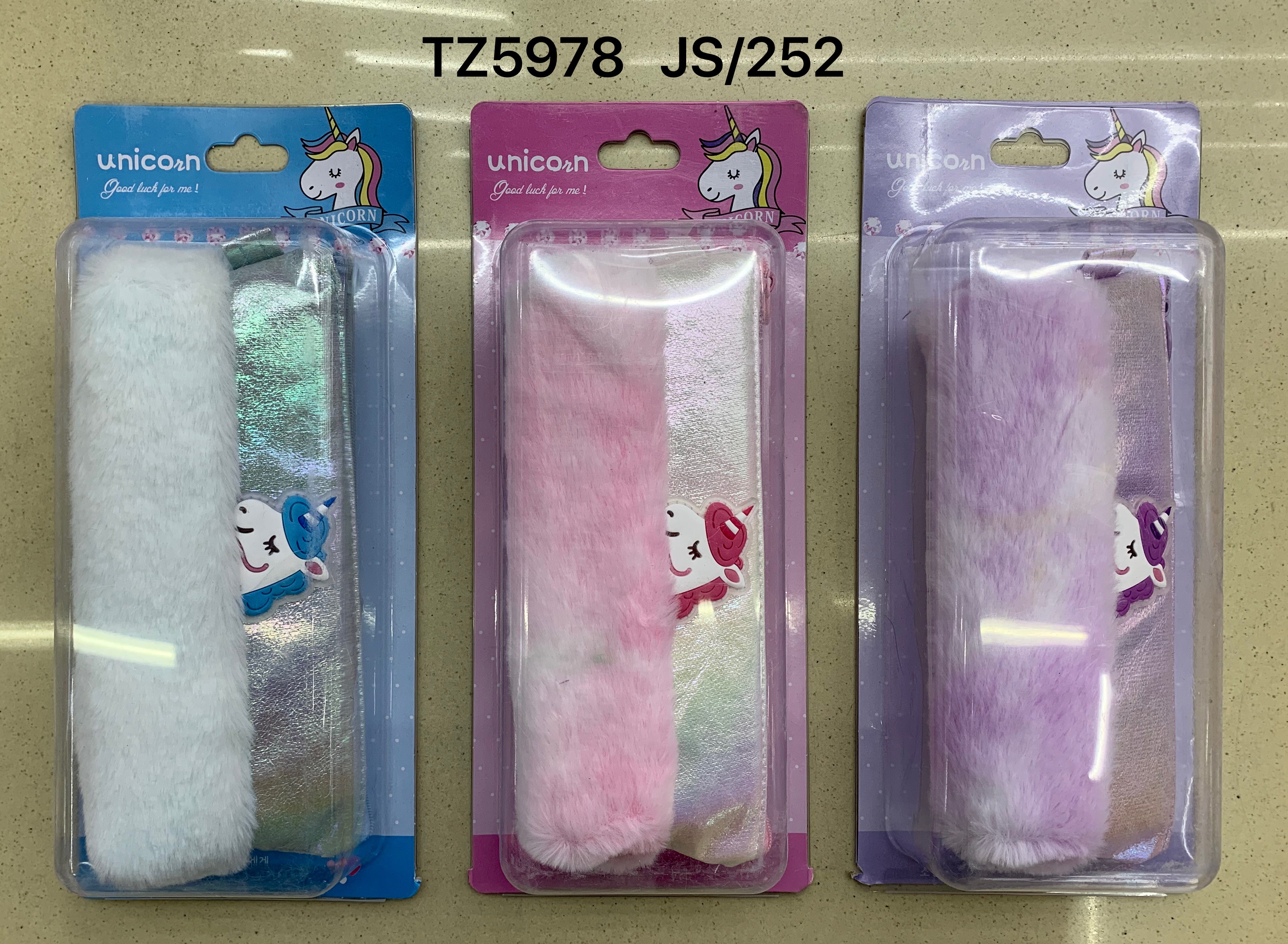 TZ5978 独角兽毛绒双层镭射女生文具笔袋
