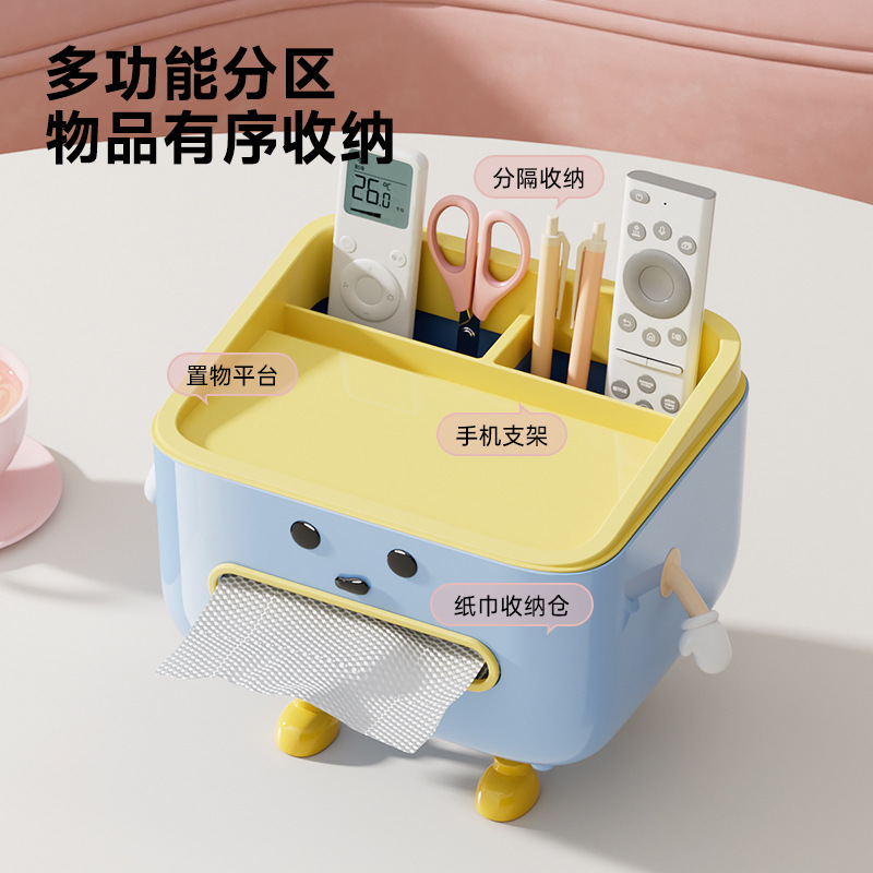 桌面纸巾盒高颜值多功能透明可视萌粒手办收纳盒大容量双层抽纸盒