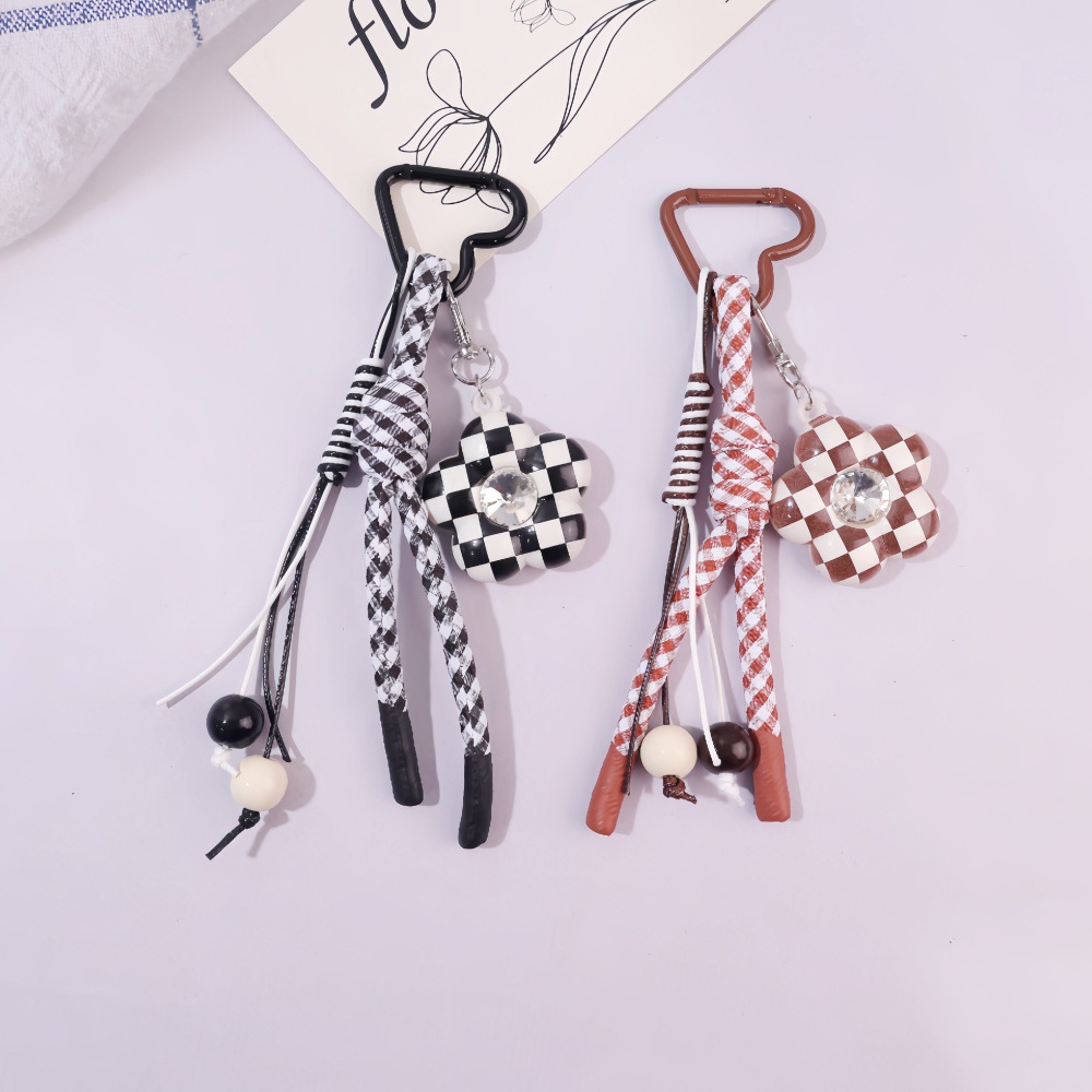 新款格子钻石花朵包包挂件皮革钥匙扣可爱卡通钥匙书包挂饰小礼品