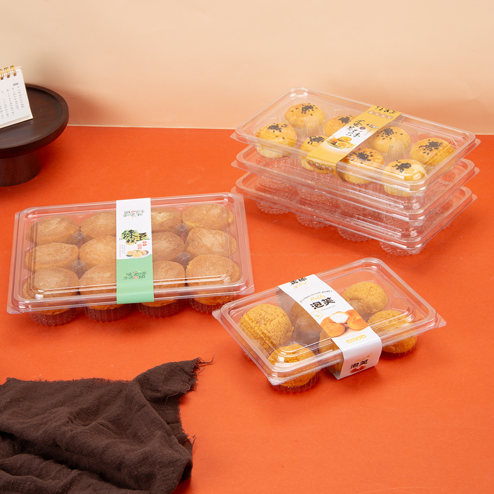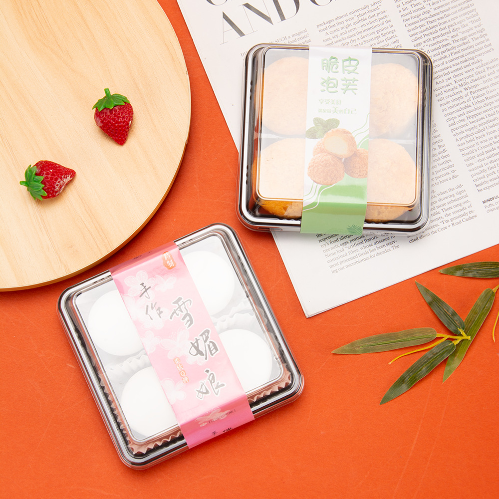 雪媚娘包装盒肉松小贝泡芙4粒装盒饼干西点蛋黄酥四格透明吸塑盒