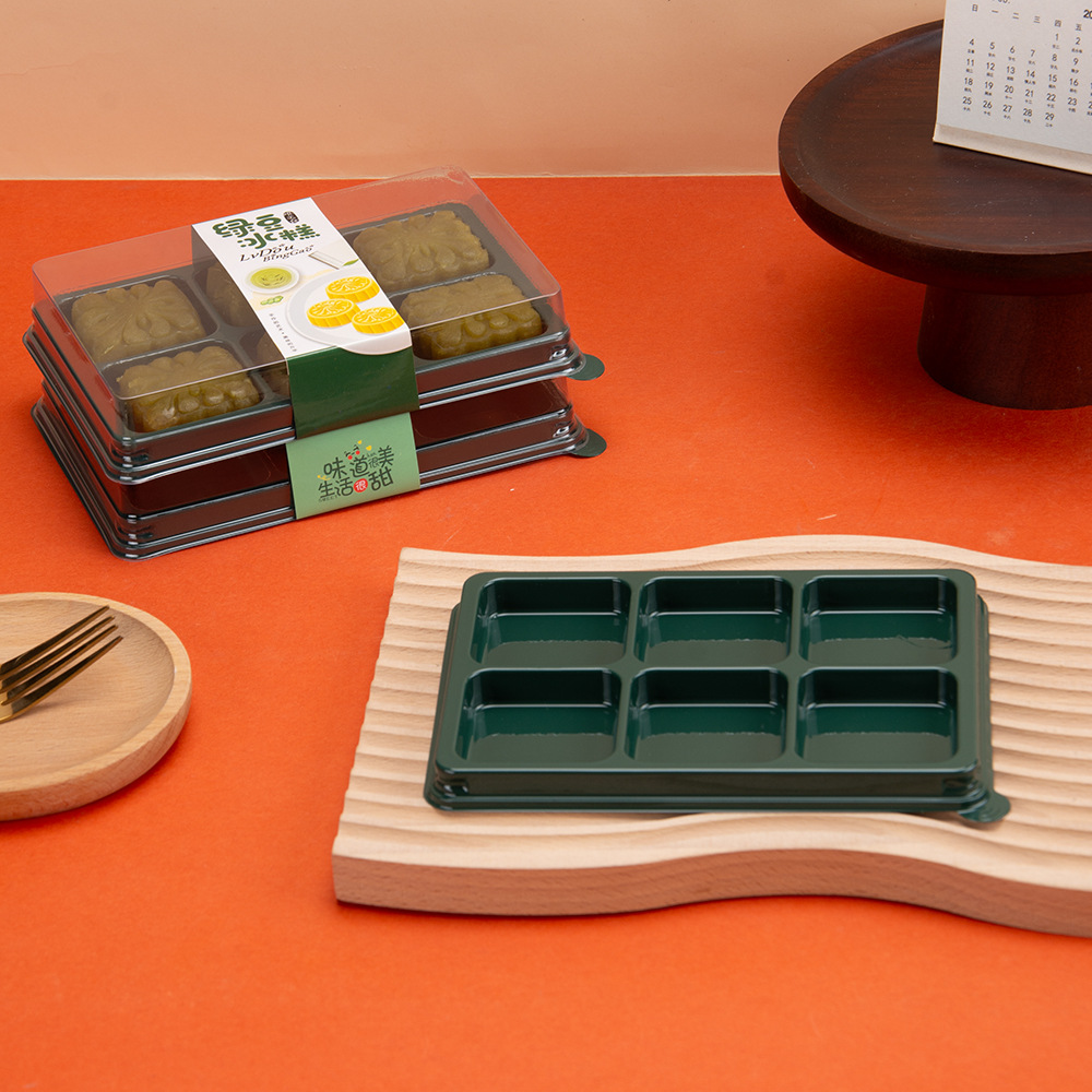 月饼包装盒一次性食品打包盒透明西点盒分格绿豆糕盒塑料零食盒子