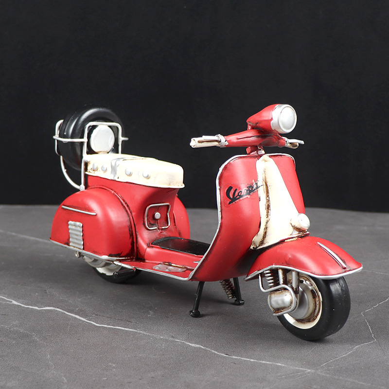 复古VESPA小绵羊踏板摩托车模型铁艺橱窗柜收藏装饰怀旧摆件