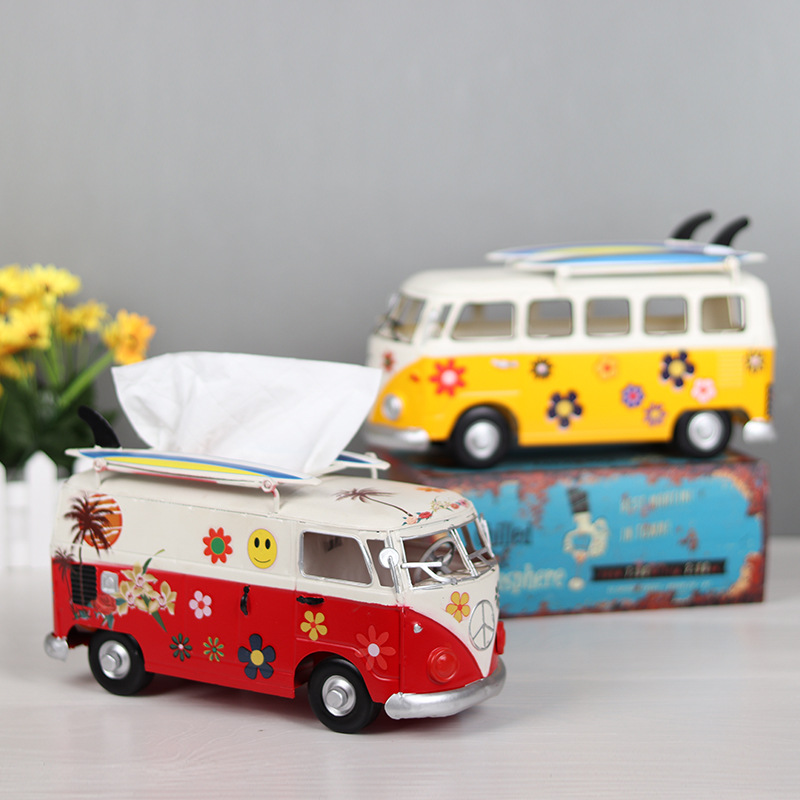 轻奢创意手工冲浪滑板巴士甲壳虫模型纸巾盒抽纸盒铁艺摆件装饰品