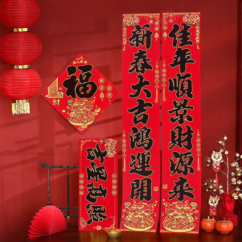 马年对联春联批货春节植绒对联黑字对联铜版纸烫金春联批发摆地摊