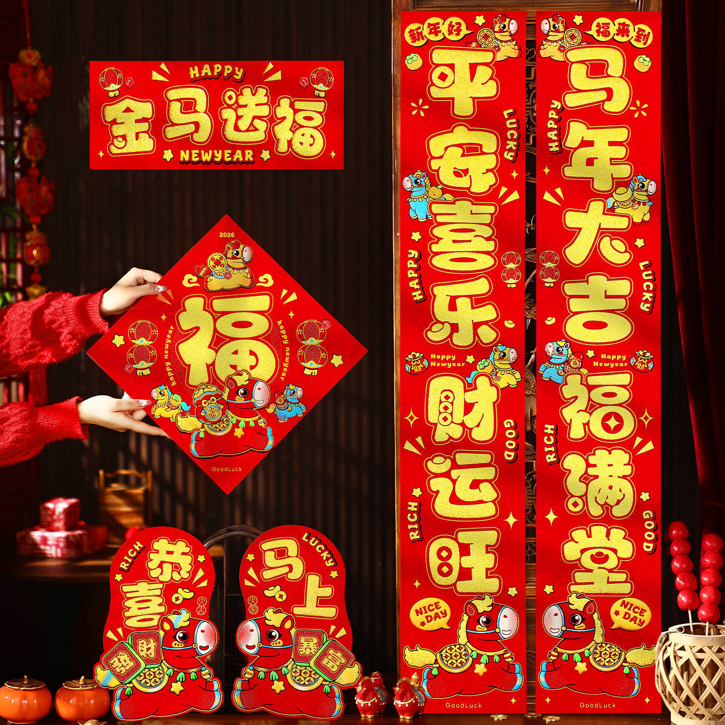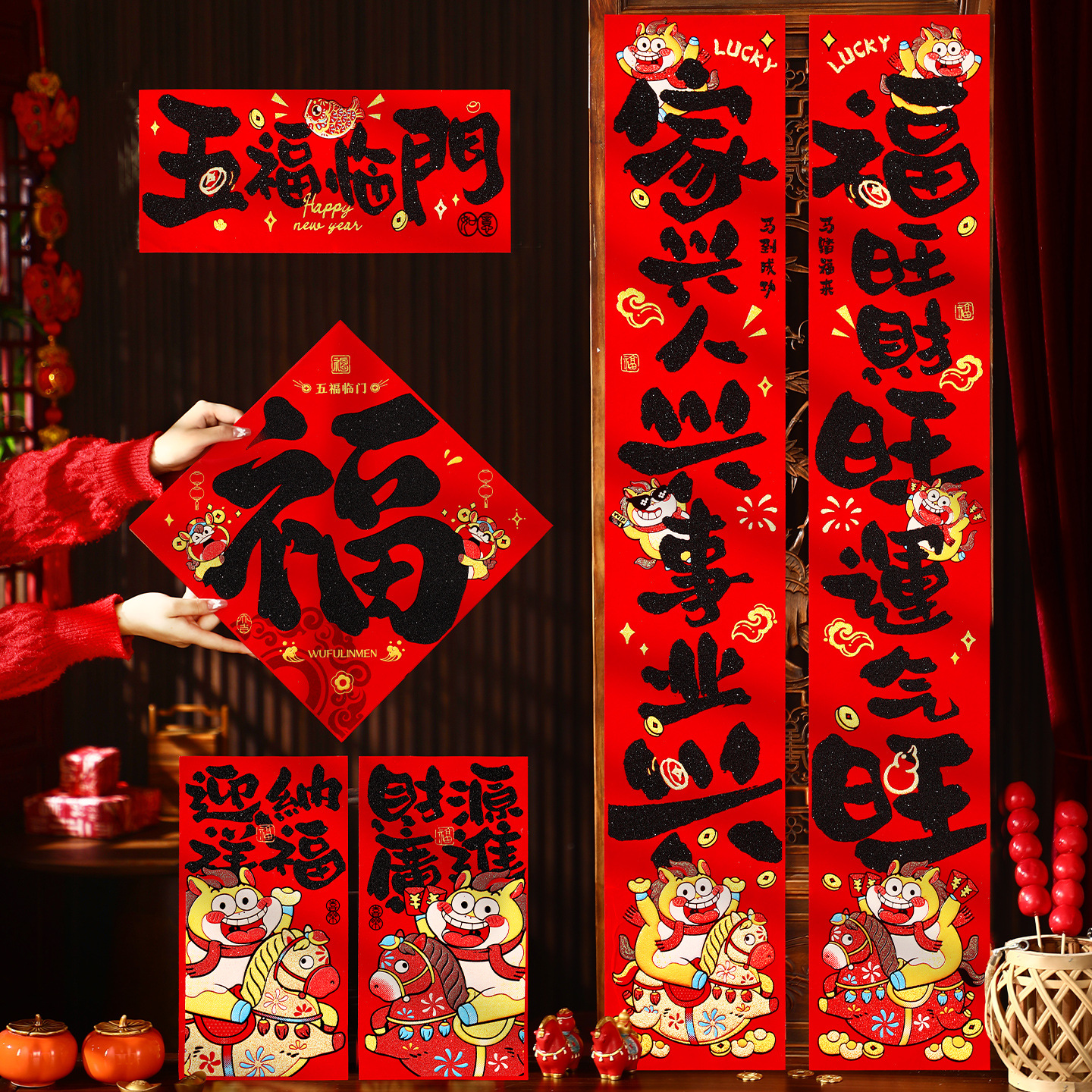 2026新款马年对联年货摆摊春节福字门贴新年装饰过年磁吸春联批货