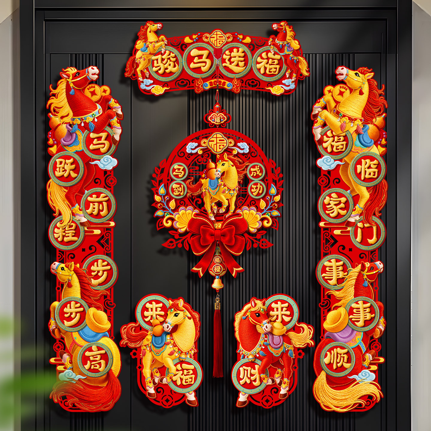 马年对联2026新款过年入户大门春联装饰新年立体福字门贴春节摆摊