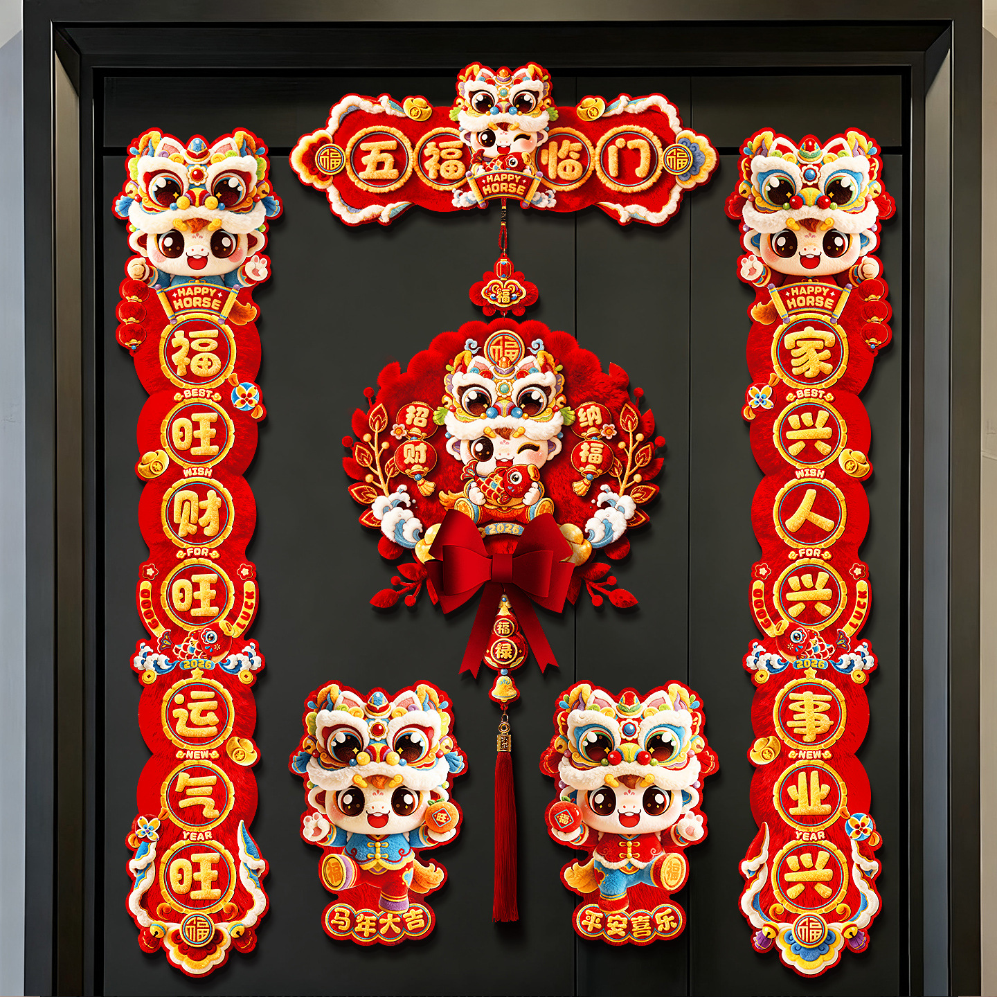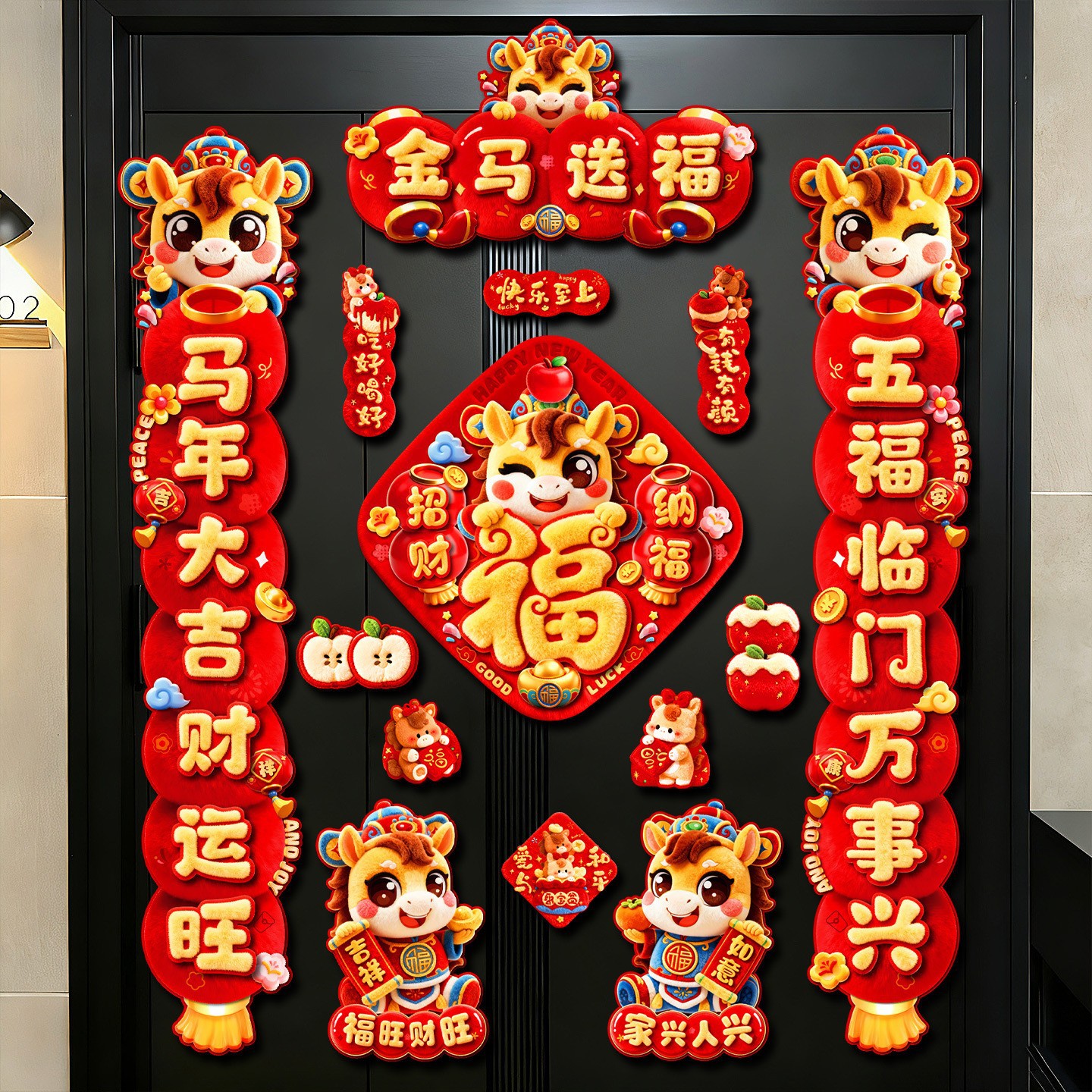 绒布小对联2026新款马年过年挂件入户门春联年春节福字装饰品批发