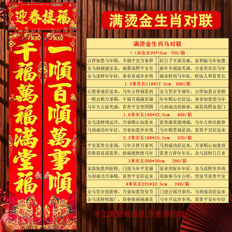 2026马年新款春节植绒烫金粉对联批发鱼版生意大门福字春联年货