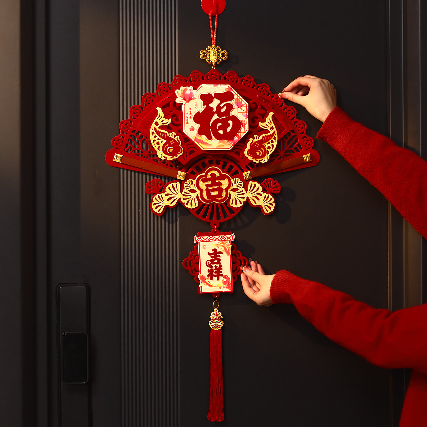 乔迁之喜装饰新居布置搬家入宅仪式用品入户门把手挂件福字万字结