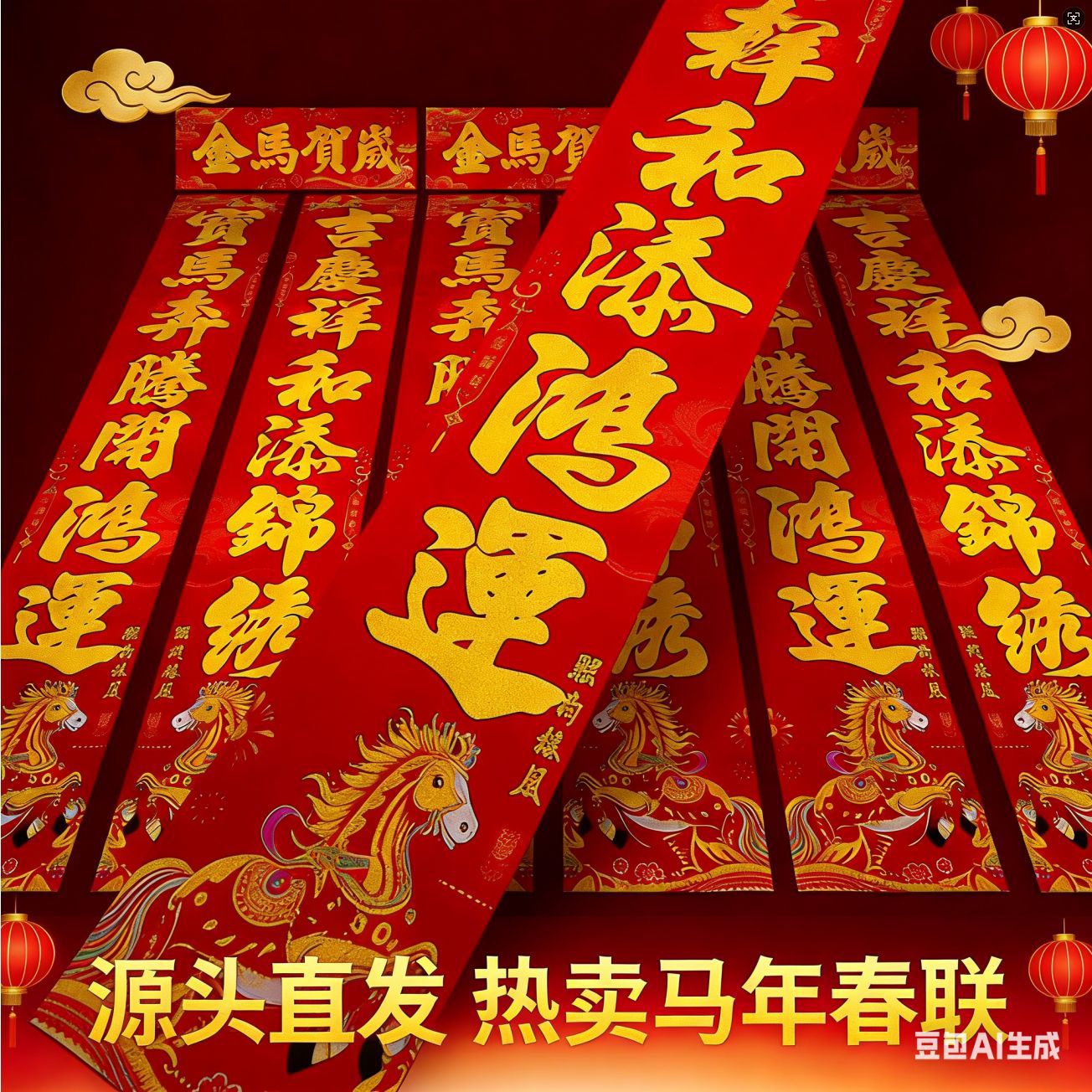 春节对联爆款2026马年春联家用农村大门福字贴纸过年新年用品批发