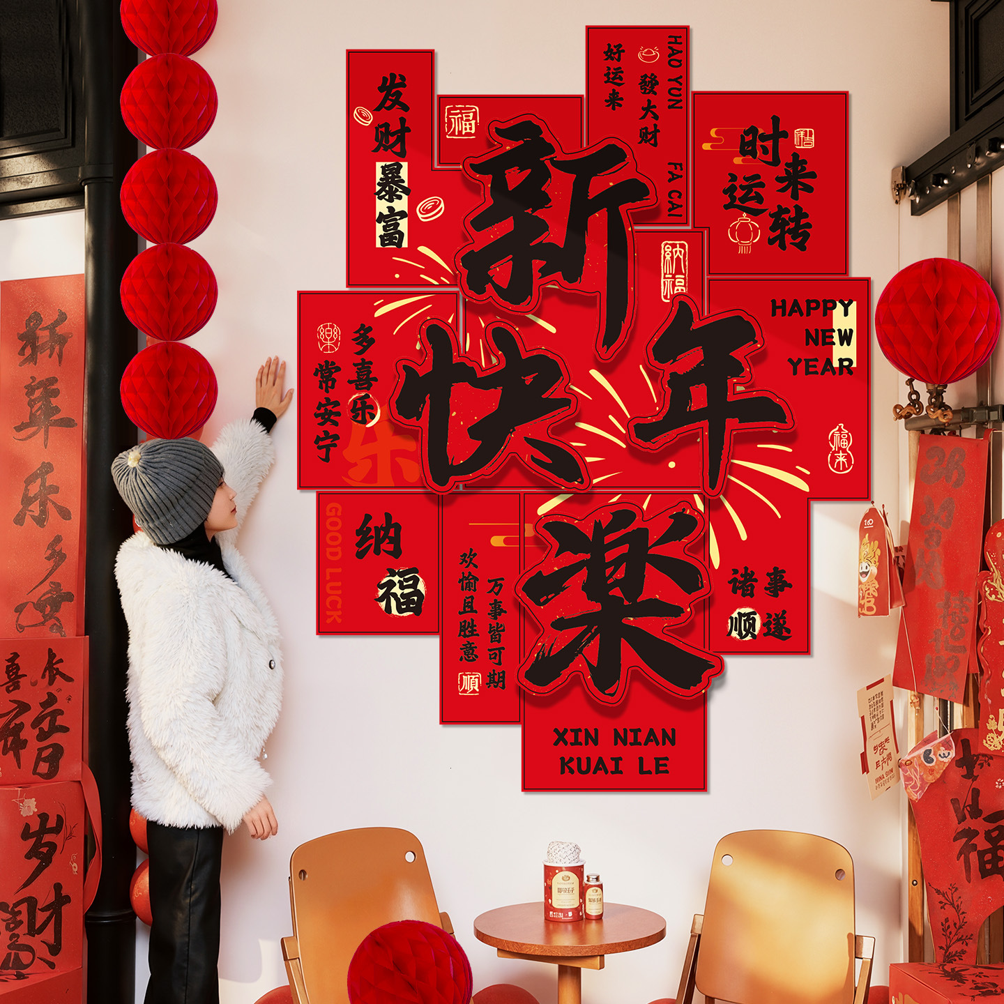 2026新款新年装饰品客厅背景墙福字贴纸春节马年氛围场景布置kt板
