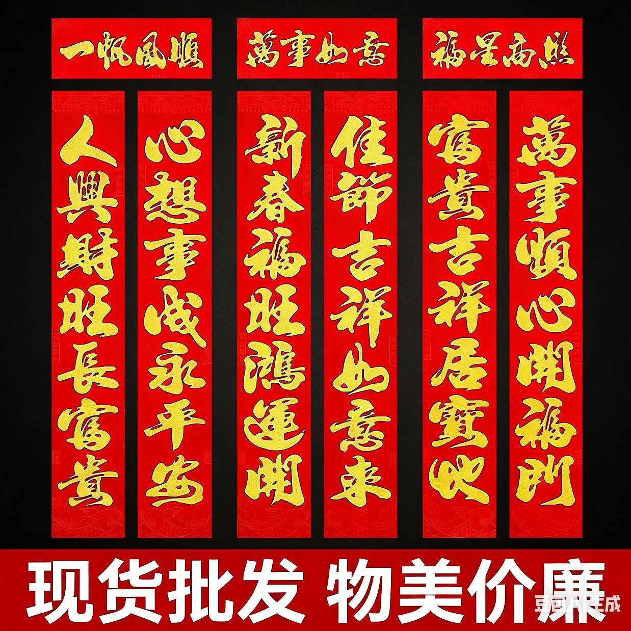 2026年马年春节批发年货摆摊爆款过年对联新年植绒对联批发福字