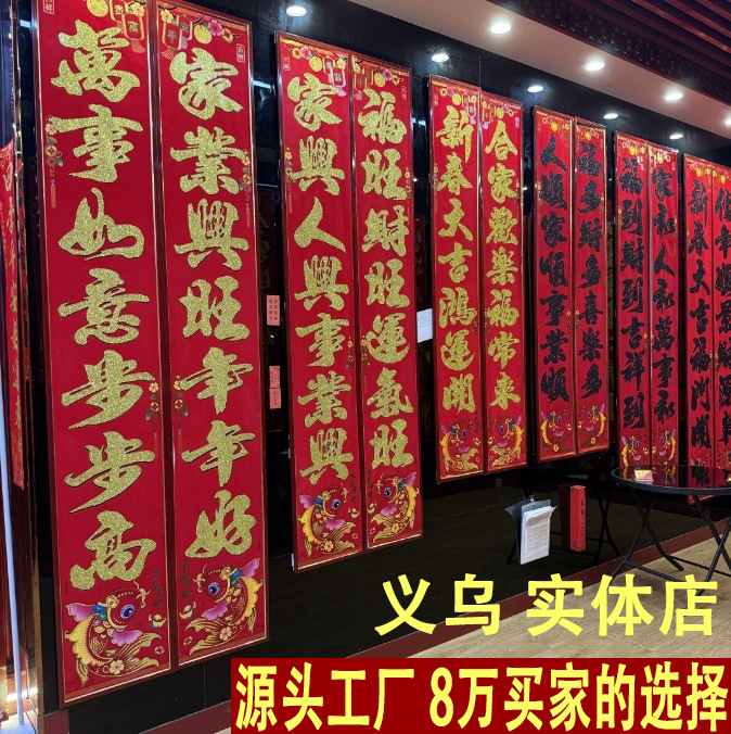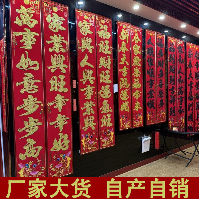 2026新款绒布对联自带背胶绒布春联门贴福字烫金绒布对联厂家批发