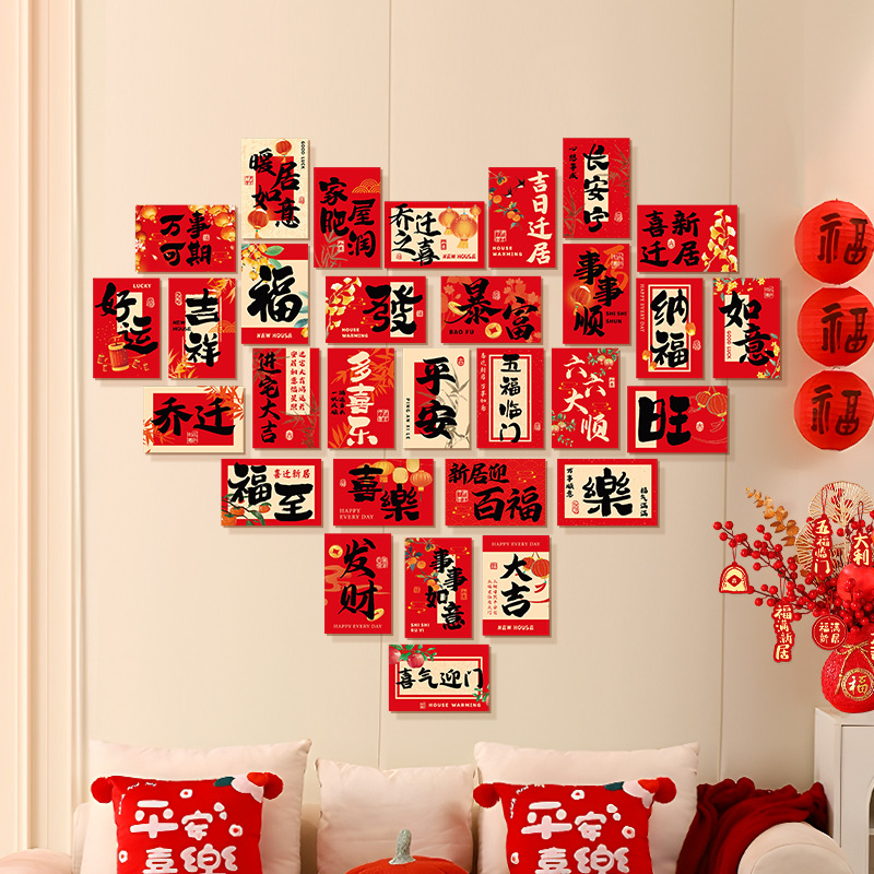 乔迁之喜装饰明信片布置套装新居拍照用品爱心背景墙福字卡片批发