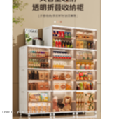 超大号客厅饮料收纳箱带轮可移动储物柜侧开门透明折叠收纳柜0414
