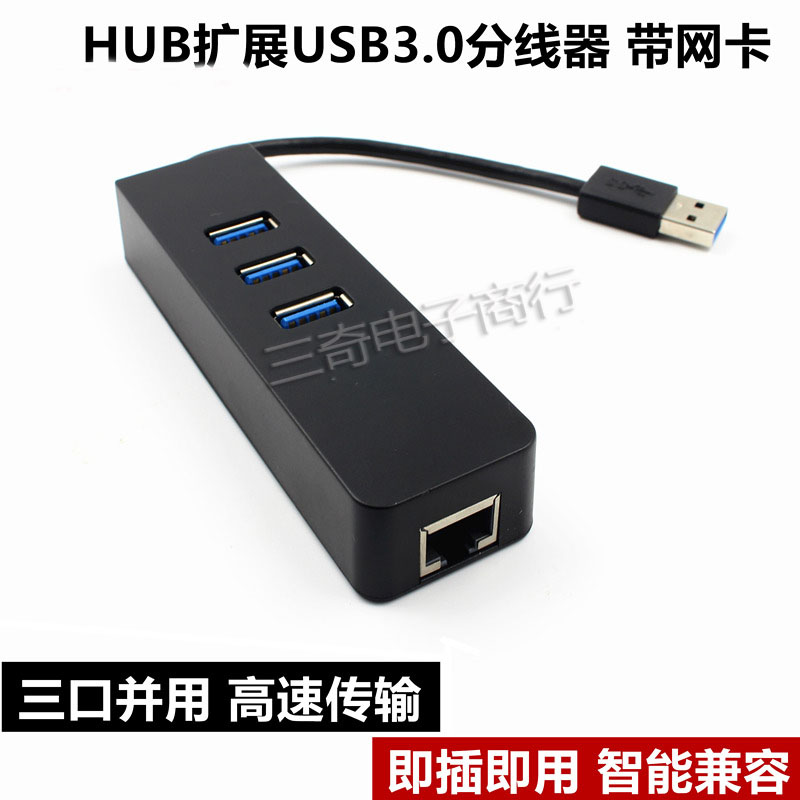usb网卡千兆网口转换器笔记本usb3.0转网线接口分线器hubF3-17162