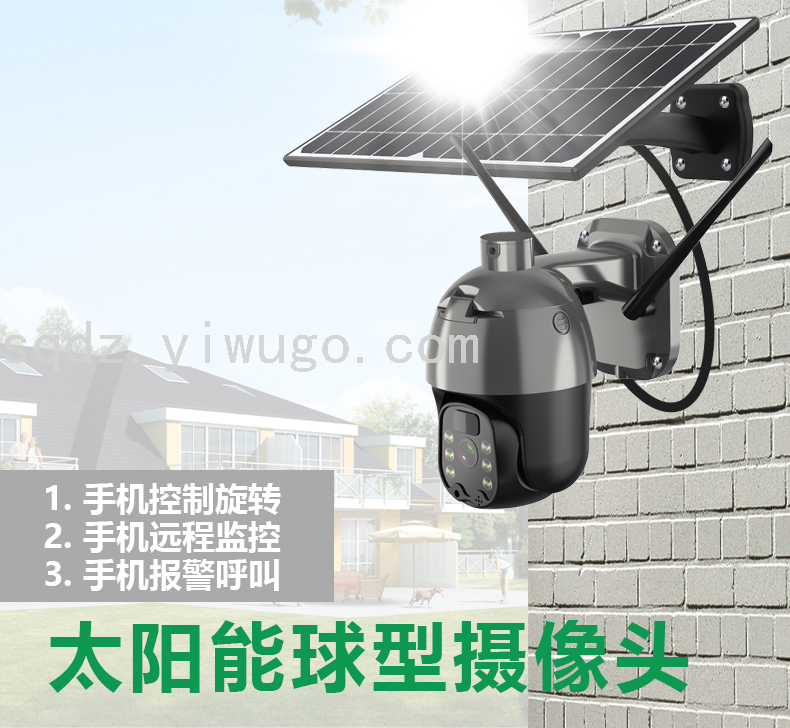 太阳能摄像头 户外360度无线摄像机 WIFI全彩高清球机F3-17162