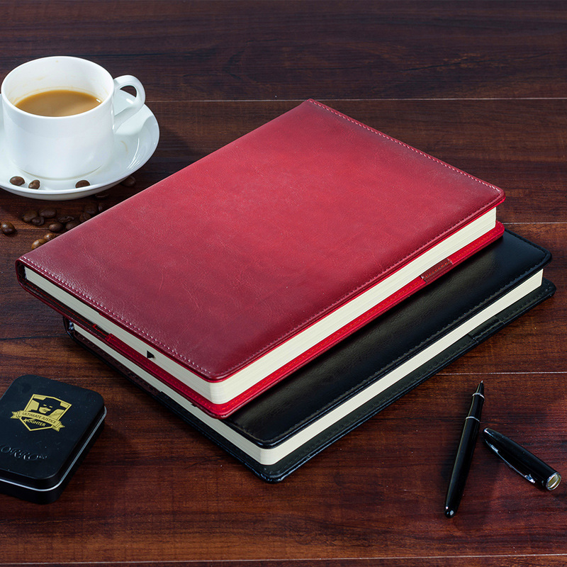 加厚商务记事本复古黑色皮面本b5会议记录本办公A5笔记本可印logo