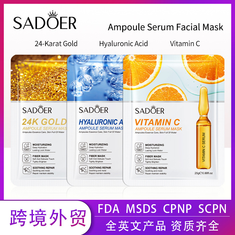 全英文安瓶精华面膜 SADOER玻尿酸补水维生素C保湿跨境外贸批发