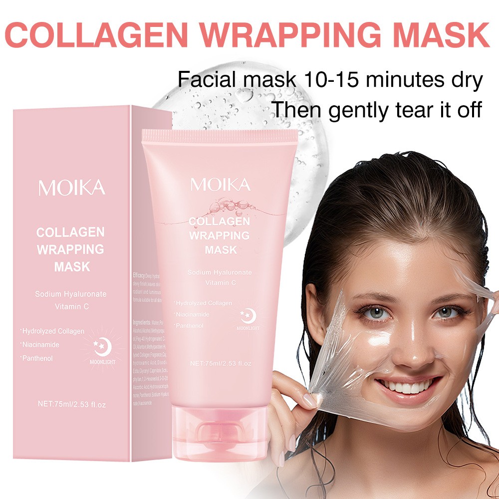 跨境款全英文胶原蛋白撕拉面膜睡眠面膜补水保湿抗皱源头工厂批发