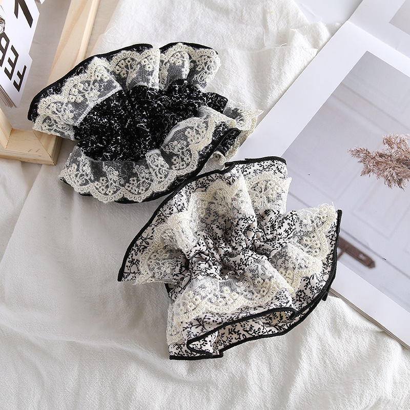 蕾丝小碎花大肠发圈女新款大号精致发绳双层蕾丝边法式大肠圈头绳