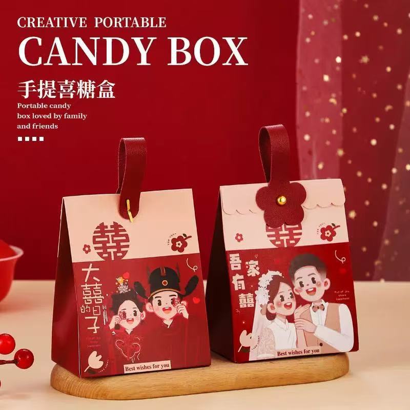 结婚喜糖盒手提款中式喜糖纸盒婚礼订婚伴手礼盒高级感喜糖袋批发