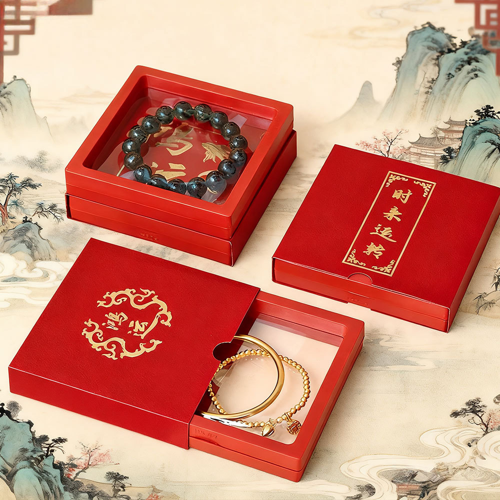 小红书爆款暗红色抽屉悬浮盒封套烫金首饰礼品盒手串戒指收纳盒现