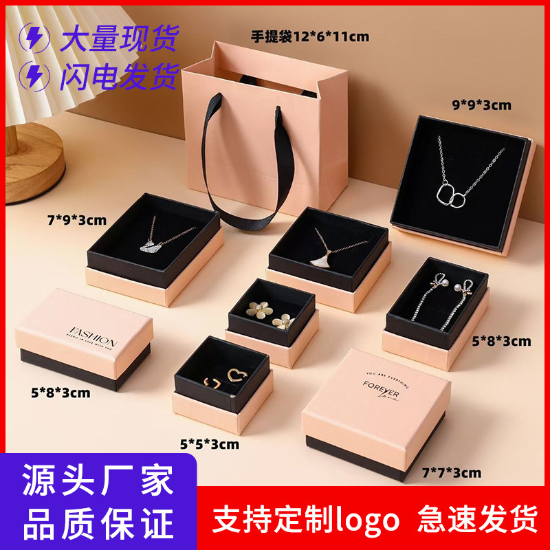 ins热销粉色饰品包装盒项链手链戒指耳环首饰盒现货可印刷logo
